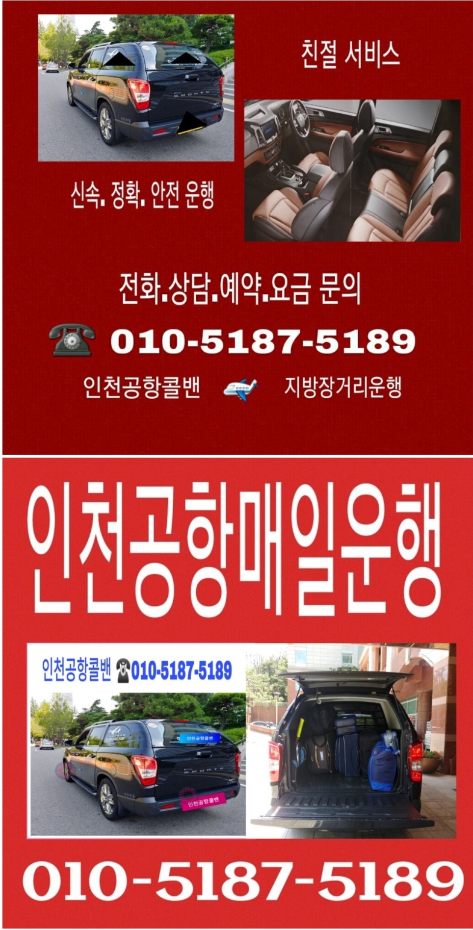 대조동콜밴 인천공항24시운행 지방장거리운행 서비스 안전운전 합니다