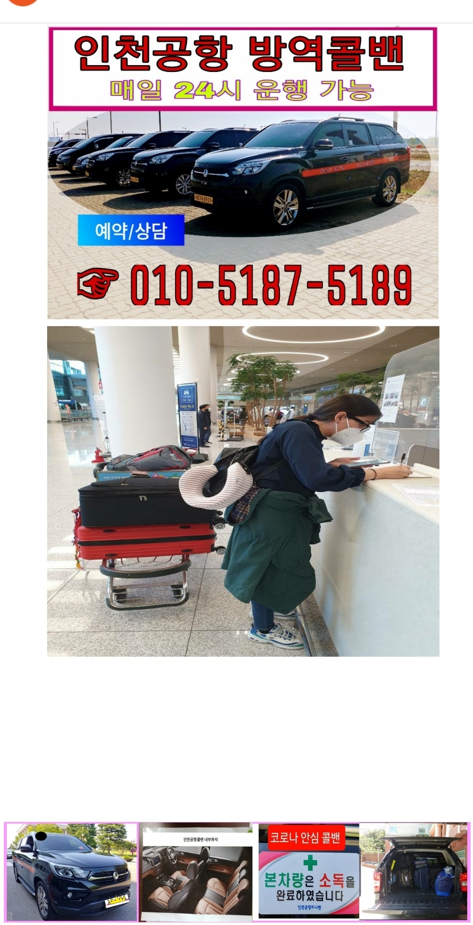 효창동콜밴 인천공항24시 방역콜밴 운행 지방장거리운행 서비스 합니다.
