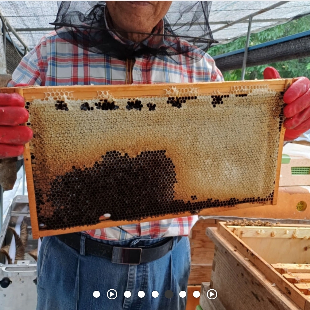 벌집 내부에서 일을하는 어린 벌들이 먹고