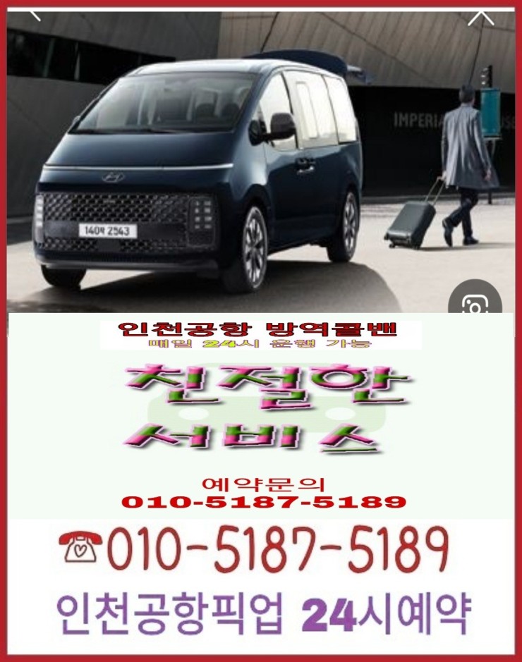 돈암동콜밴은 인천공항 주,야 24시 예약 받습니다 인천공항 샌딩 픽업/