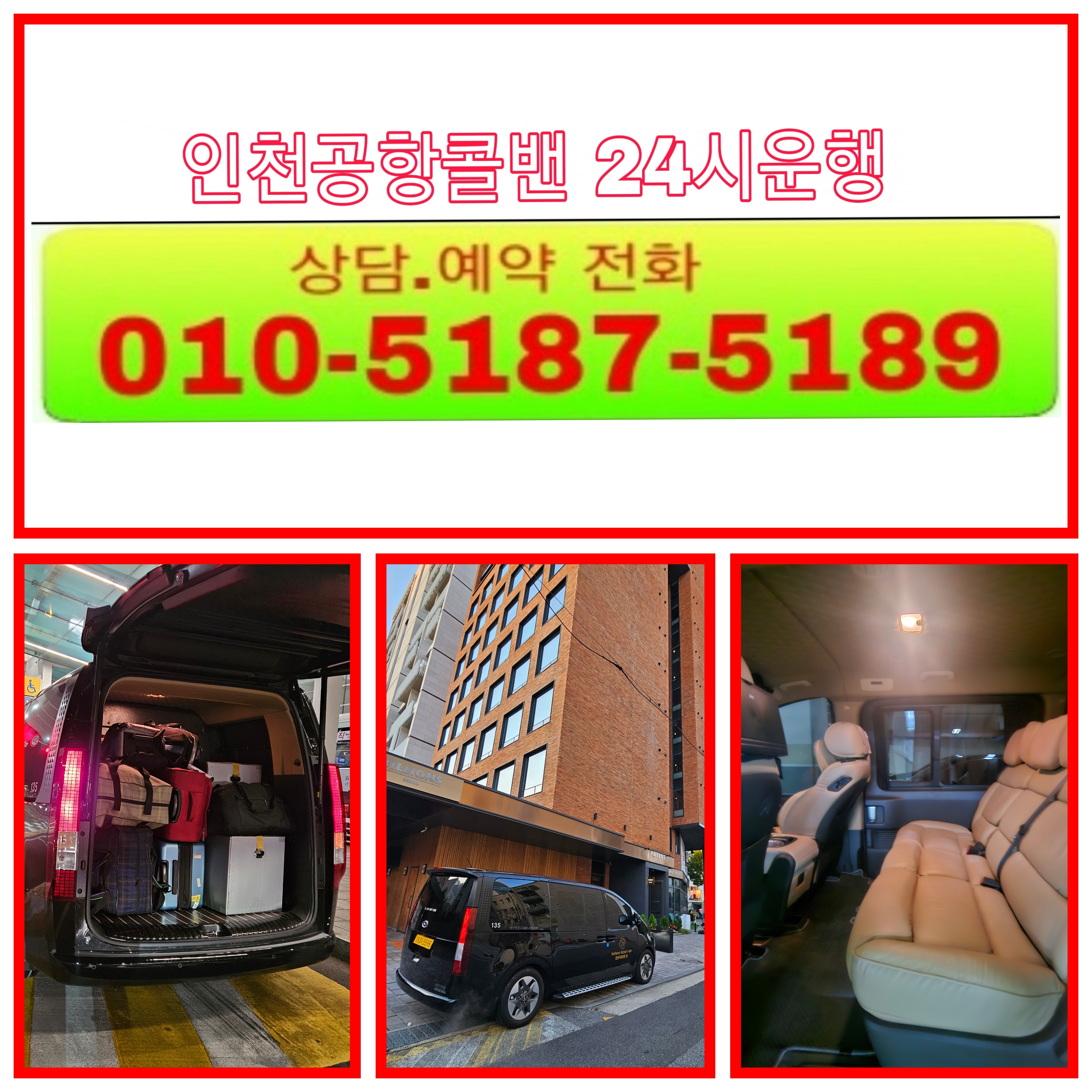 인천공항 5인승콜밴 365일 연중무휴 24시간 항시대기.( 바로 이용 가능)
