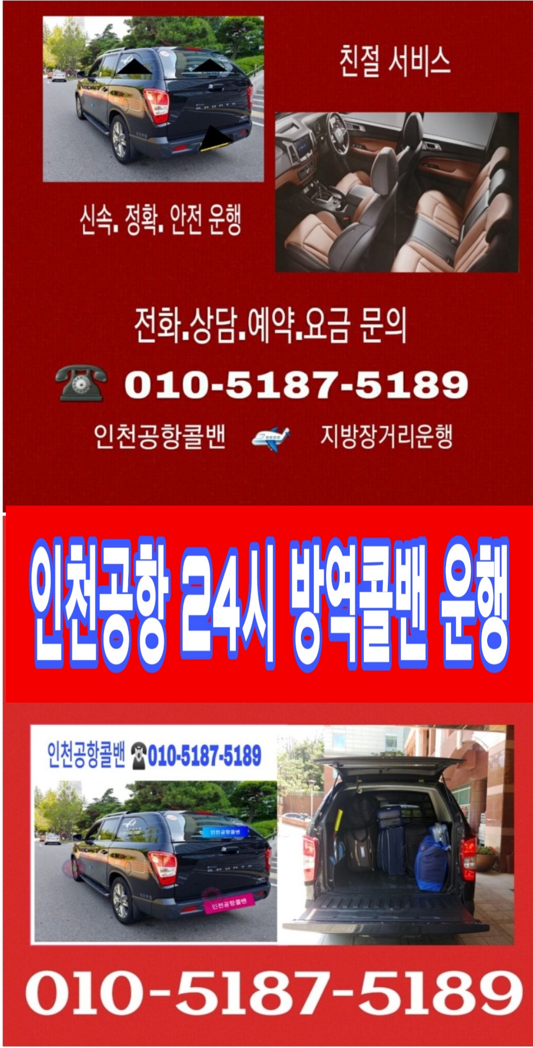효자동인천공항콜밴은 인천공항 24시 김포공항 24시 저렴하게 방역콜밴 예약 받습니다/