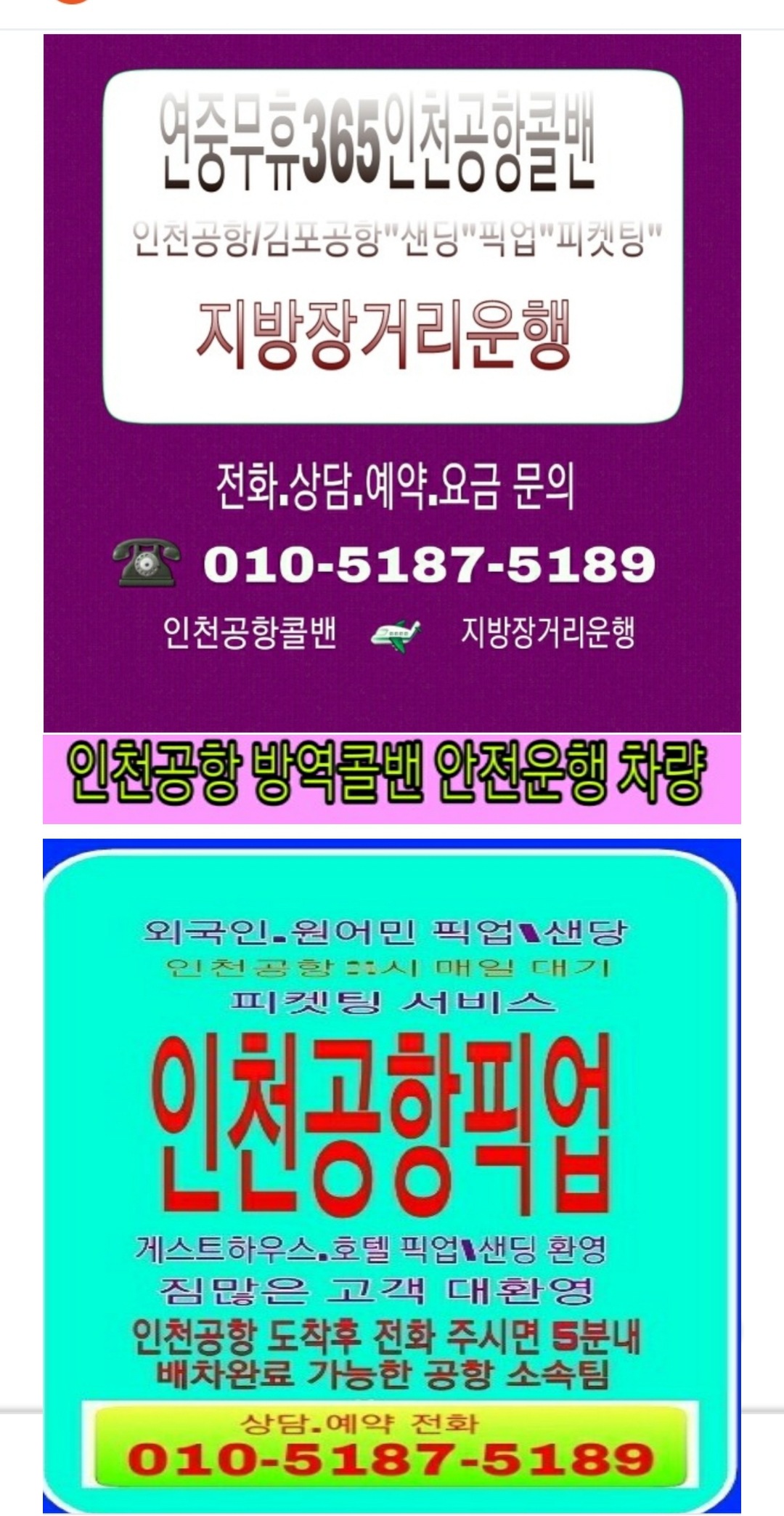 창신동콜밴은 동에서 연중무휴 운행하는 방역콜밴은 인천공항콜밴뿐입니다/