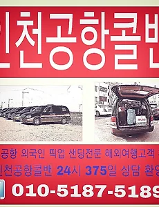 인천공항콜밴 (저렴한 가격 이용하세요)☆☆ 인천공항콜밴 (저렴한 가격 이용하세요) 인천공항콜밴은 기사님포함 6명 정원 짐칸이따로 있습니다/ 인천공항콜밴 이민가방 7~8개 정도 무난히 적재가능/ 의료관광,게스트하우스,성형외과,외국인픽업 샌딩 전문 바이어 원어민픽업 샌딩 전문 인천공항콜밴은 고시원이사 콜밴이사 가능/ 인천공항콜밴에서 언제나 콜밴 기사님이 24시 대기 합니다/ 인천공항콜밴에 예약이 필요하십니까 좋은콜밴 이용하시려면 믿을수 있는 인천공항소속팀 예약하세요/ 인천공항콜밴 인천공항 새벽운행 철저한 시간 약속 콜밴으로 고객님의 믿어주는 콜밴입니다/ 전국지역 금천구,중량구,강남,서초,양재,반포,송파,종로 경기도 용인,수지,분당,판교,수원,안양,과천,군포,시흥,안산 이용 가능 합니다. 콜밴 요금 정보 입니..
